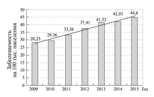 4. Fig. 4. The dynamics of the incidence of subclinical hypothyroidism in adults in Russia in 2009–2015. [4].