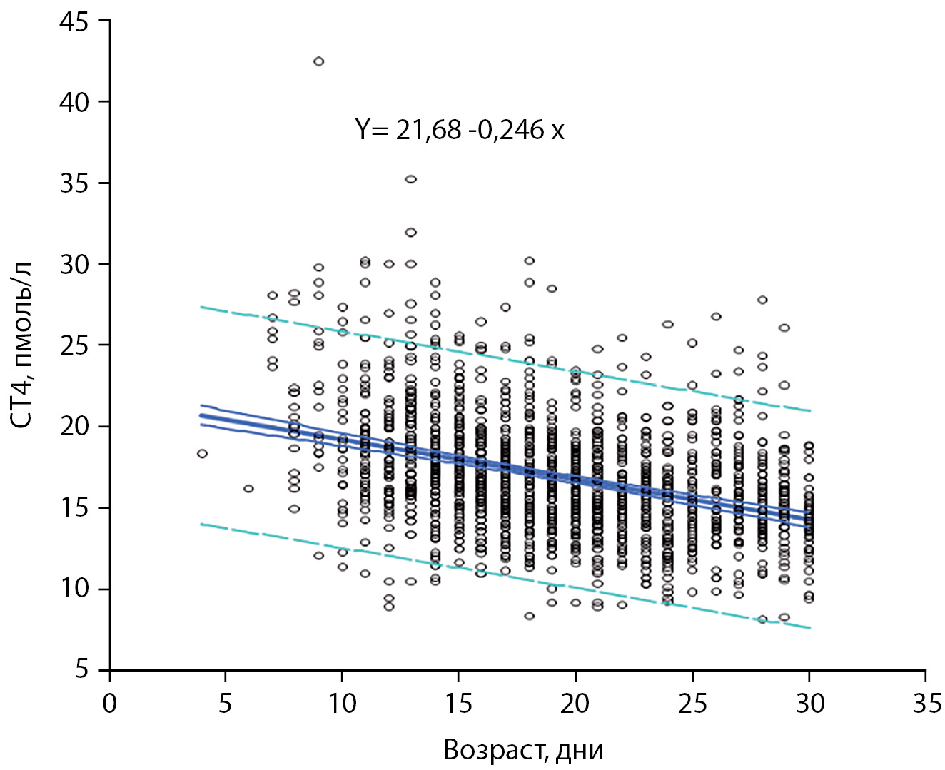 Определение нижнего предела референтного интервала свободного тироксина у новорожденных с целью выбора терапевтической тактики при врожденном гипотиреозе