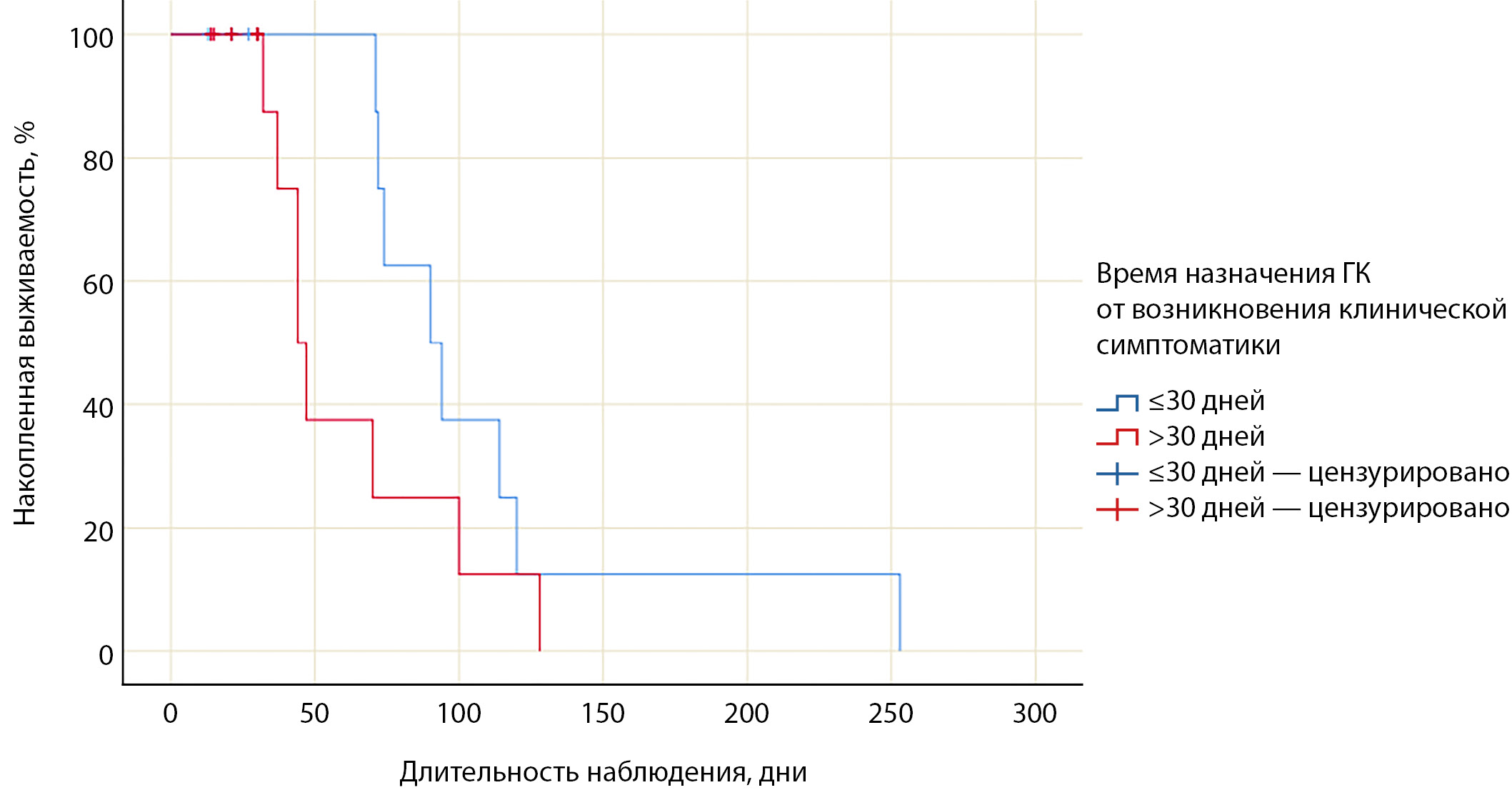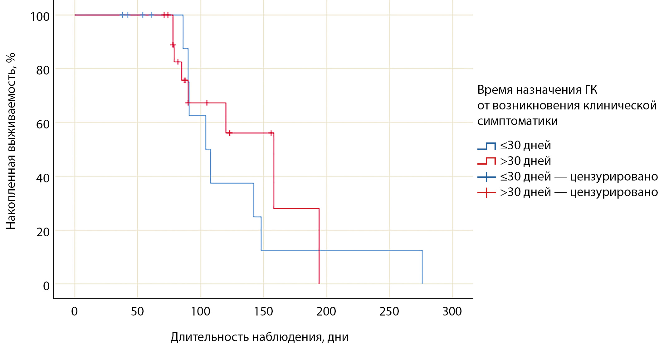|  | 3. Рисунок 3а. Кривая Каплана-Мейера, характеризующая выживаемость пациентов с недостижением эутиреоза в течение 1 месяца терапии глюкокортикоидами в зависимости от времени их назначения. | |