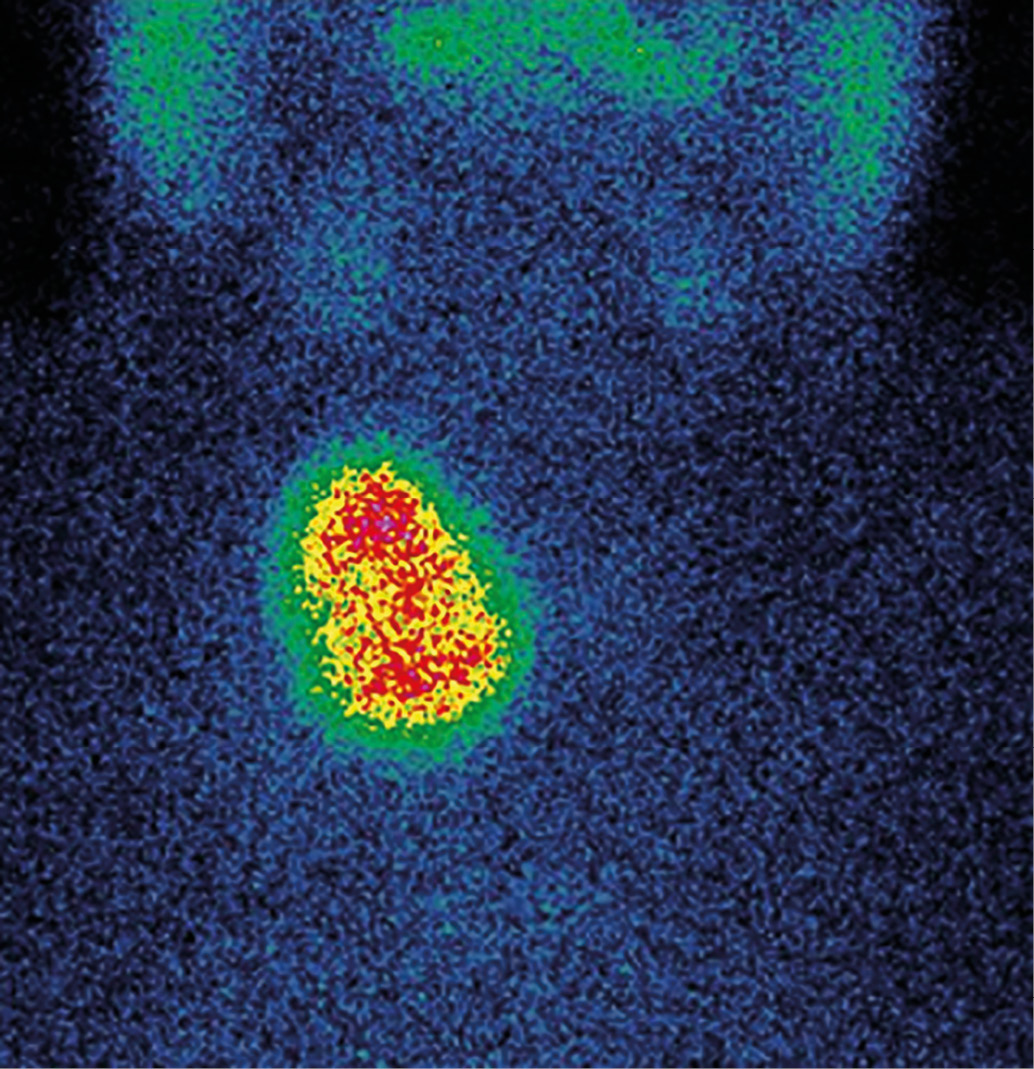 2. Рисунок 2. Повторная сцинтиграфия щитовидной железы с Тс-99м-пертехнетатом после отмены антитиреоидной терапии.