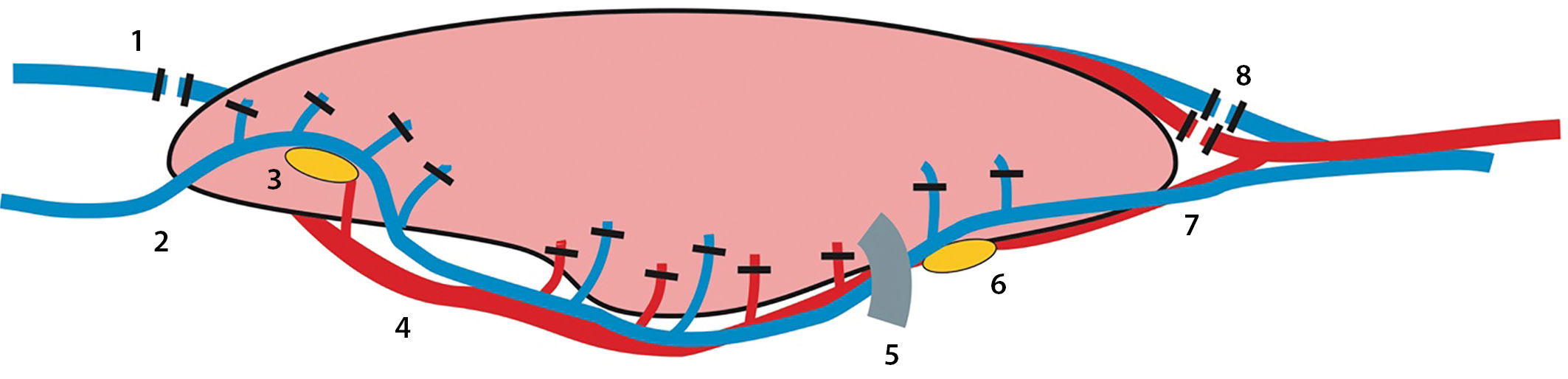 3. Рисунок 3. Рассечение сосудов левой доли щитовидной железы (вид с медиальной стороны доли)