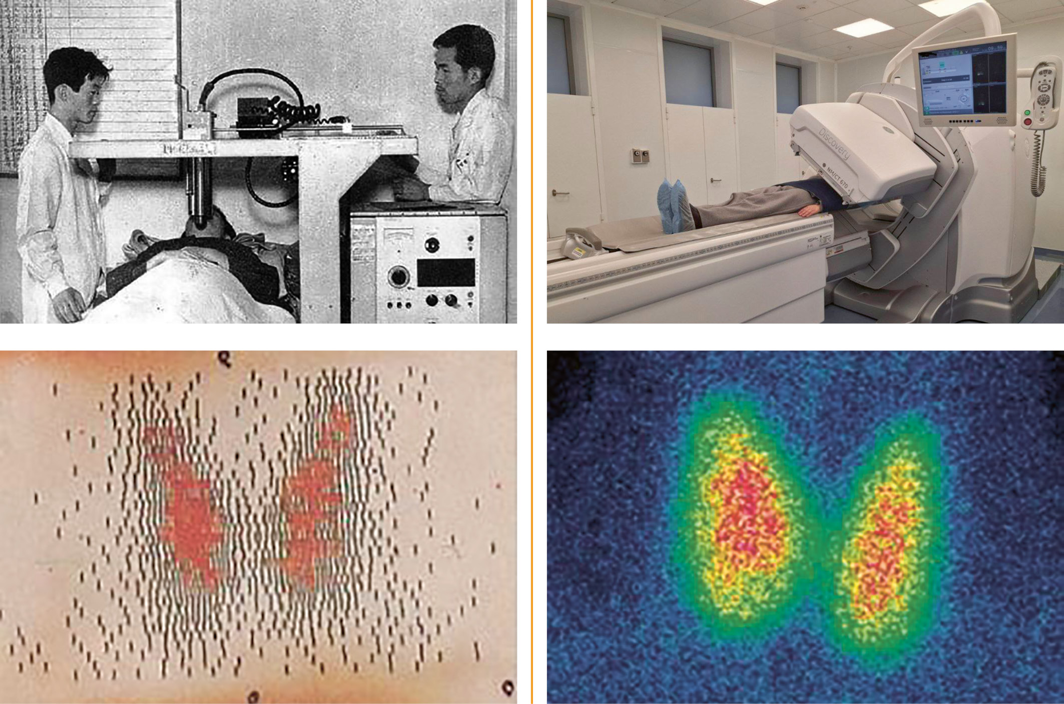 4. Рисунок 4. Радионуклидная визуализация щитовидной железы в 1970-е годы (слева) и в 2020-е годы (справа).