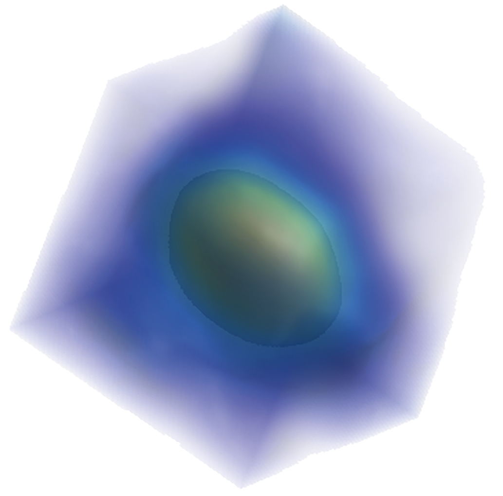 2. Рисунок 2. Локализованный кубический объем области интереса, центр которого совпадает с максимальным значением интенсивности в маске.
