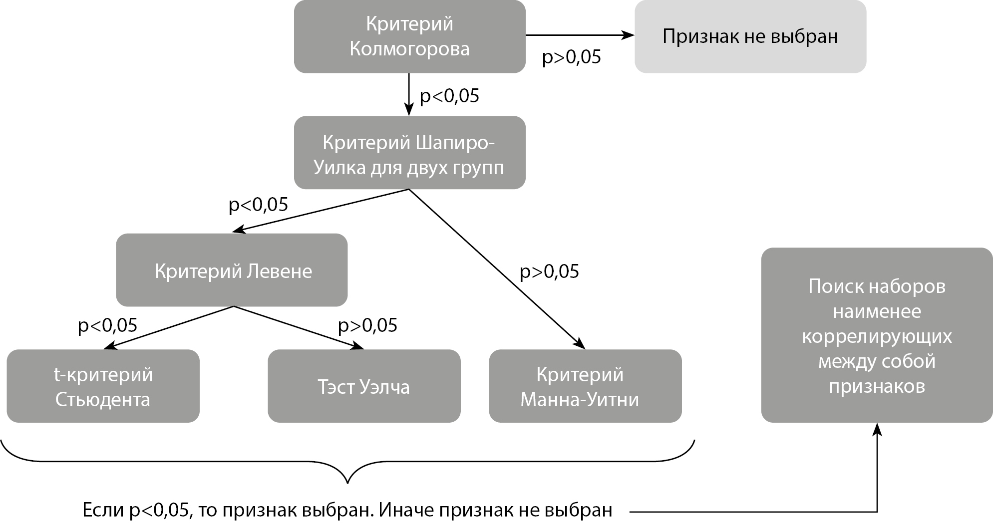 4. Рисунок 4. Алгоритм отбора признаков с помощью статистических критериев