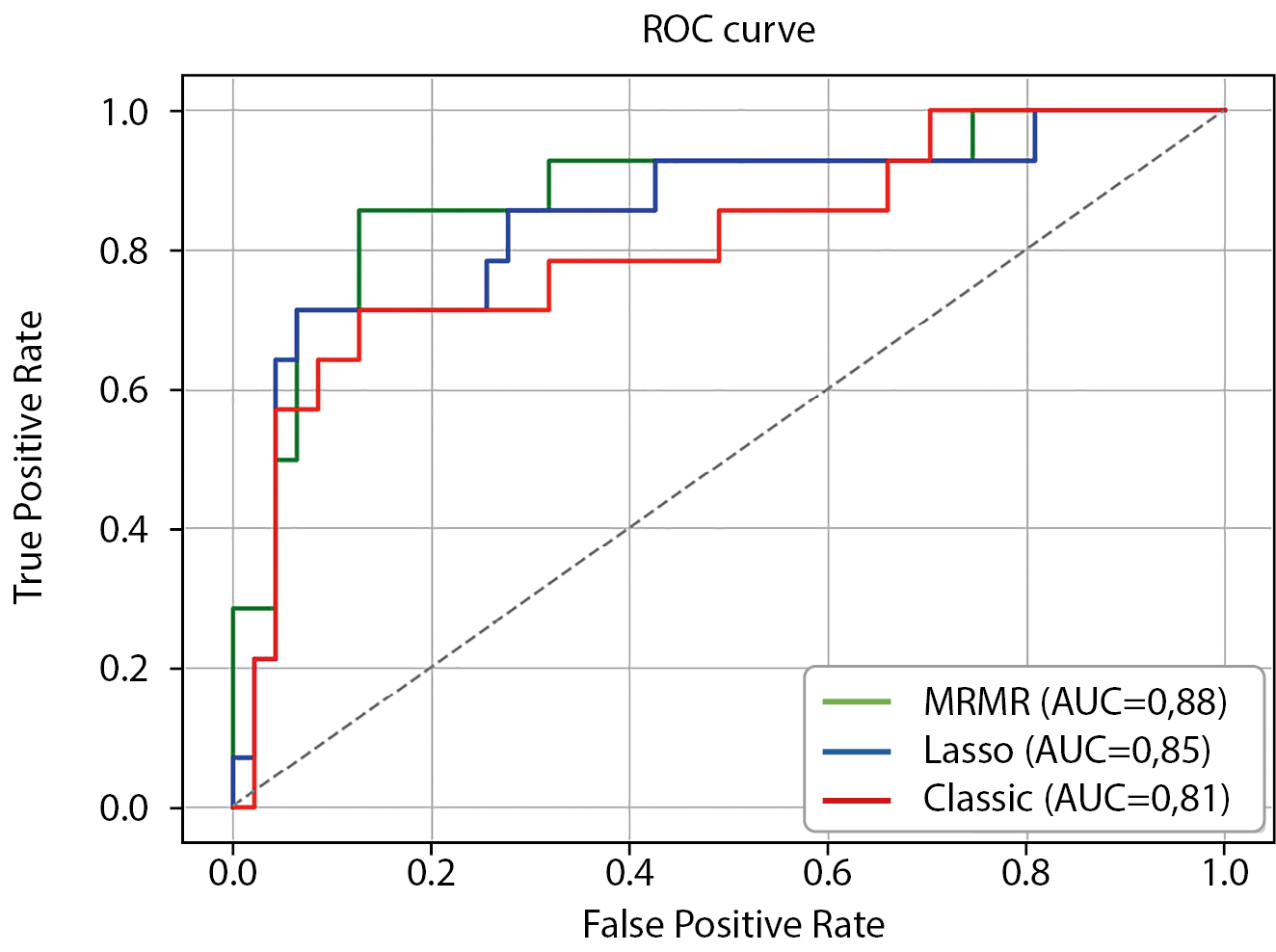 6. Рисунок 6. ROC-кривые диагностических моделей для метастатической ткани.