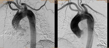 Рис. 4. Ангиография (селективное контрастирование сонных, левой и правой подключичных артерий).