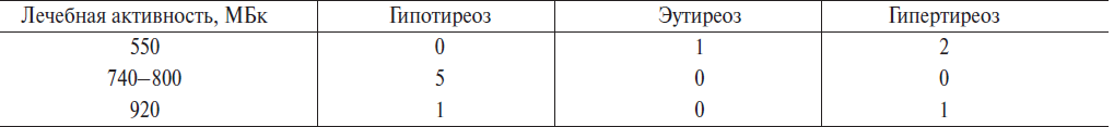 2. Таблица 2. Лечебная активность 131I и тиреоидный статус через 6 мес после РЙТ | |