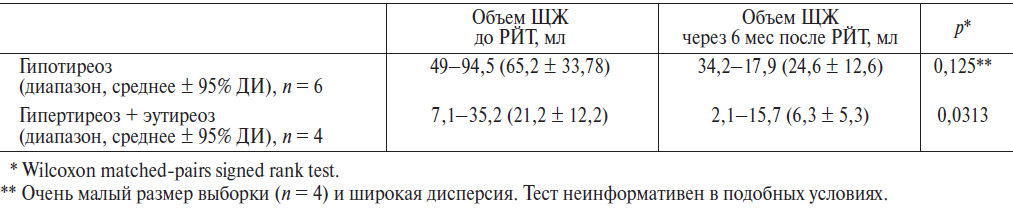 3. Таблица 3. Изменение объема ЩЖ через 6 мес после РЙТ | |