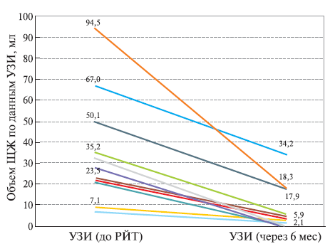 5. Рис. 1. Динамика объема ЩЖ (мл) до и через 6 мес после РЙТ. | |