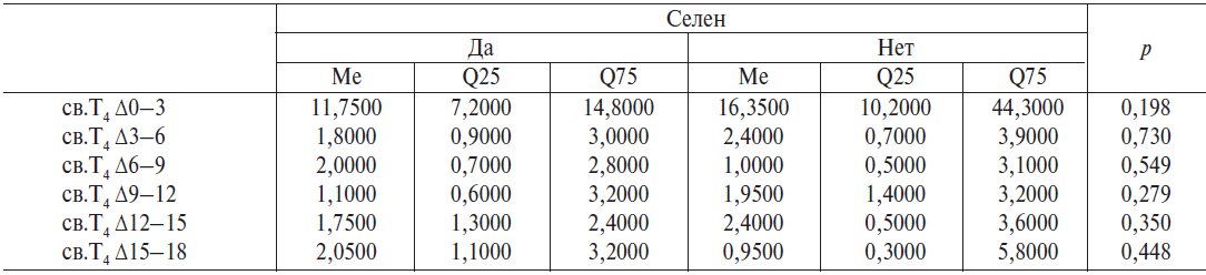 Таблица 8. Динамика разницы изменений св.Т4 в течение 18 мес