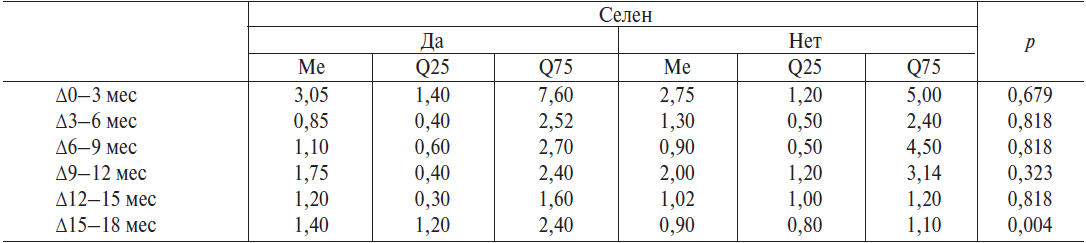 Таблица 4. Динамика разницы изменений ТТГ в течение 18 мес