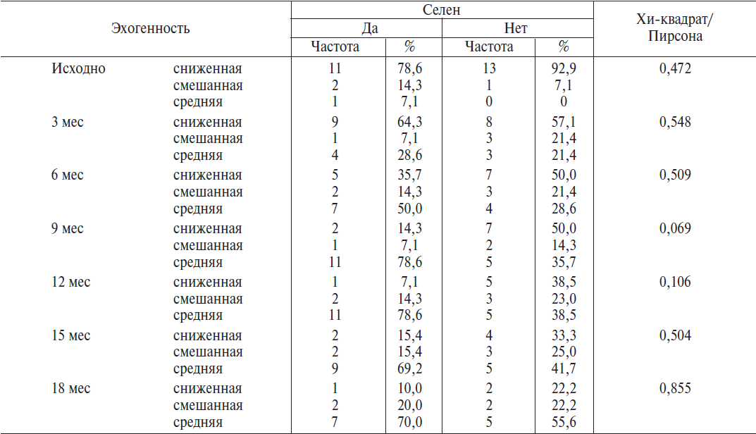 Таблица 17. Сравнение эхогенности паренхимы ЩЖ в течение 18 мес