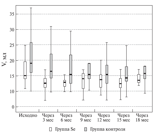 Рис. 14. Изменение объема ЩЖ в течение 18 мес.