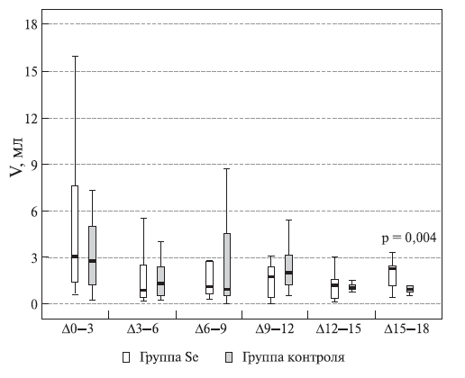 Рис. 15. Динамика разницы изменений объема ЩЖ в течение 18 мес.