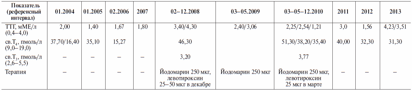 12. Калдымова В.А., Кияев А.В., Тюльпаков А.Н. Синдром резистентности к тиреоидным гормонам. // Клиническая и экспериментальная тиреоидология. – 2013. – Т. 9. – №1. – С. 51–53. [Kaldymova VA, Kiyaev AV, Tyul’pakov AN. Syndromes of resistance to thyroid hormone.Clinical and experimental thyroidology. 2013;9(1):51-53. (In Russ.)] doi: 10.14341/ket20139151-53.