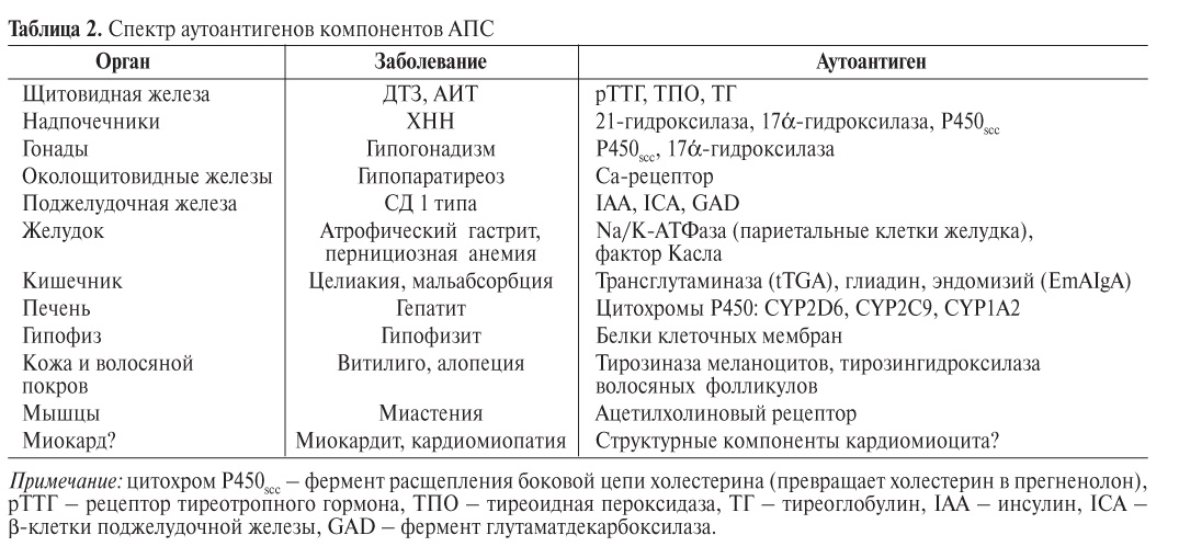 2. Table 2. Spectrum of autoantigens of APS components | |
