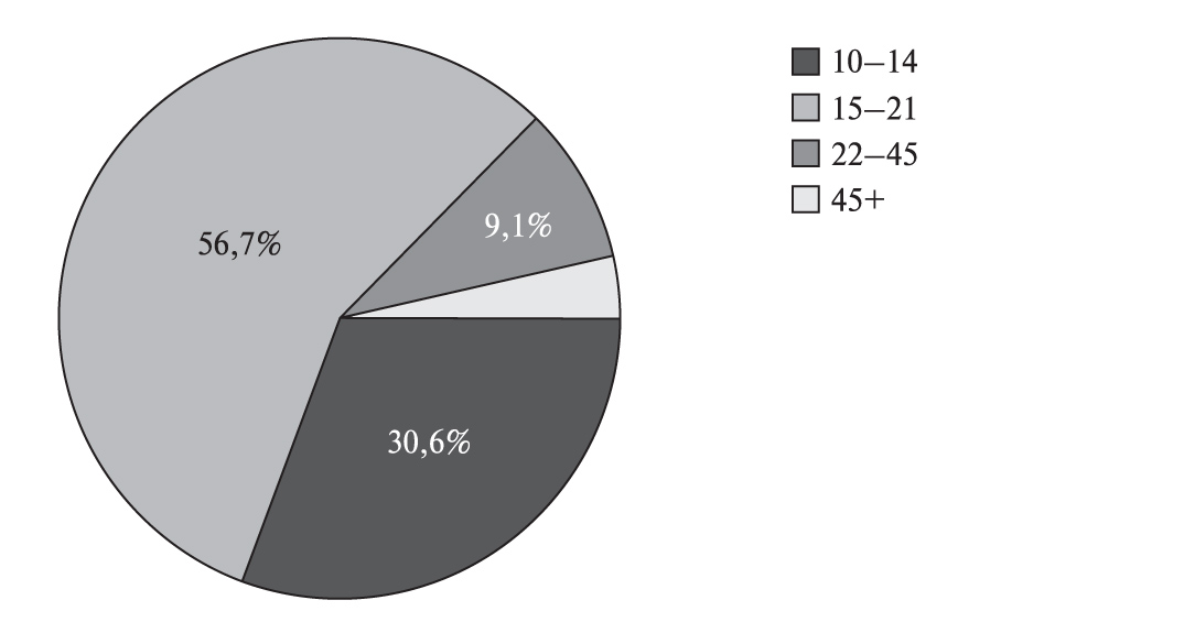 Медианный интервал возраста респондентов – 18 лет.